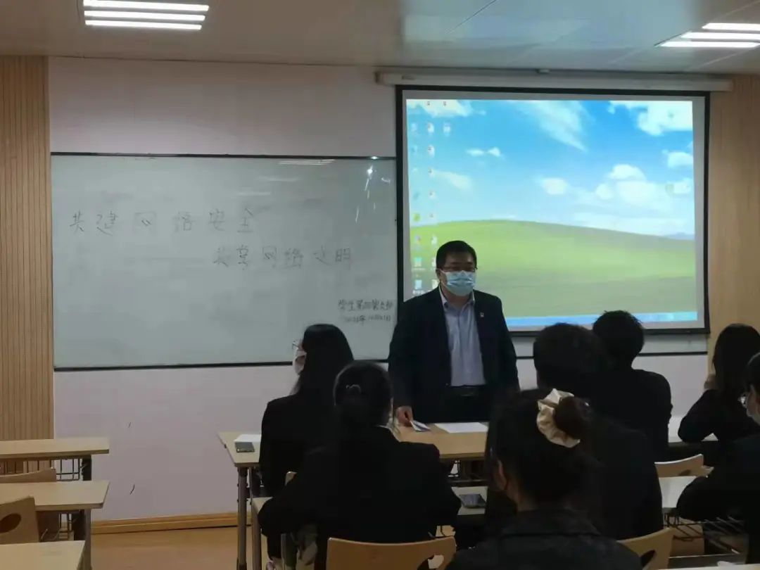 活动开始由各学生党支部活动负责人简要介绍关于网络安全教育方面的知识,然后通过PPT讲解、观看网络安全与信息化专题教育视频、学习一系列《网络安全法》并结合具体的案例,向同学们讲述了一些校园周边存在的网络安全隐患和网络安全常识。