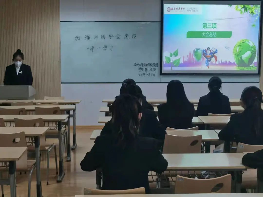 最后,各支部活动负责人对本次网络安全文明活动做总结并提出倡议,引导广大学生上网要做到“三不”和“三上”,即不网上散布谣言、不进色情垃圾网站、不沉迷于网络游戏,做到健康上网、文明上网、绿色上网。严格落实网络安全工作责任,做好各类网络安全威胁风险,采取针对性措施切实加强网络安全防护,注意网络安全,做到文明上网,是我们每个人的责任。