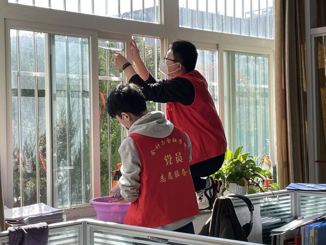 经过近两个小时的打扫工作,院系办公室内面貌焕然一新。既为老师和同学们创建出了更加整洁干净的的办公学习环境,也为接下来专家组进校视察评审做好了充分准备。大家在清扫过程中分工协作,展现出了饱满的热情和积极的状态,学生党员代表们展现了党员的先锋模范带头作用,发挥了党员同志服务群众、不怕苦不怕累的精神,同时也体现出我院师生齐心协力、务实劳作的精神风貌。