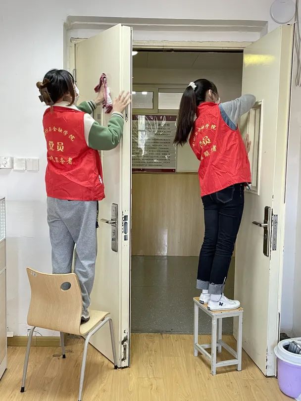 针对办公室难以清洁的卫生死角,院系的一些党员学生代表没有一个抱怨喊累。在经过师生们全方位彻底清理后,办公室桌面干净整齐,窗户玻璃清澈透明,室内无杂物,不留任何卫生死角。同时为积极配合疫情防控工作,在清扫结束后,我们还对院系办公室进行消毒喷洒,筑牢我校疫情防控常态化。
