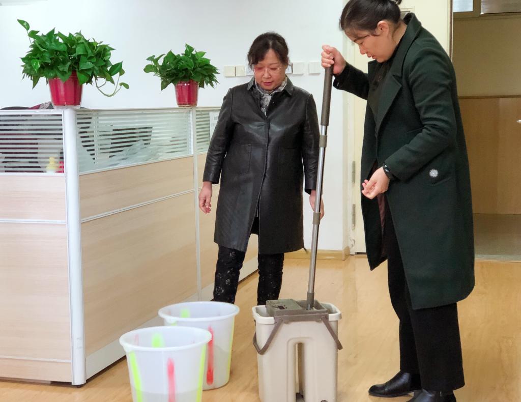 高婷、宋天妹、张沛源老师负责工位及地面清洁工作;