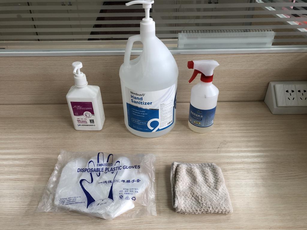 张慧、屈佳、夏晓荣老师负责全面消杀工作,喷洒消毒液酒精对于死角地带进行处理。
