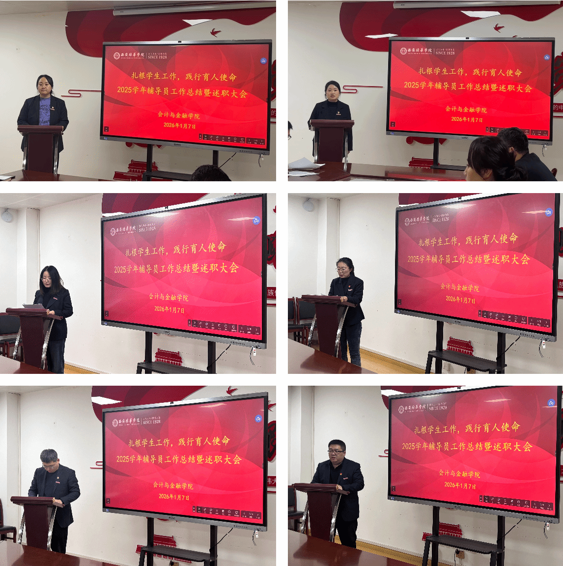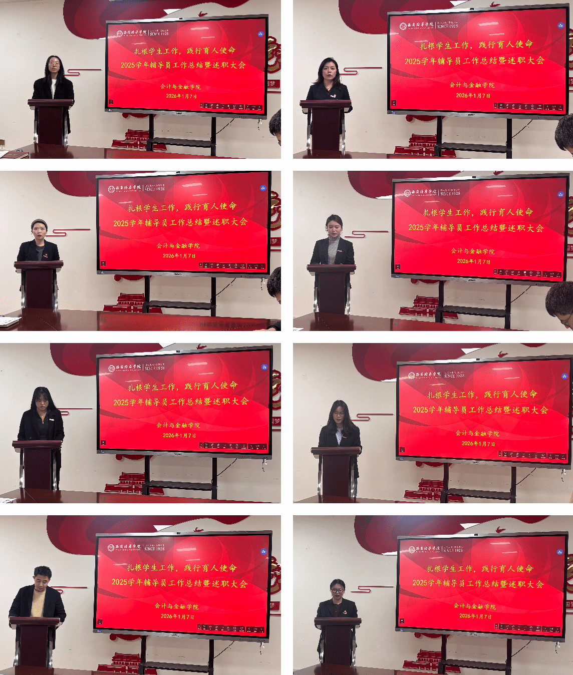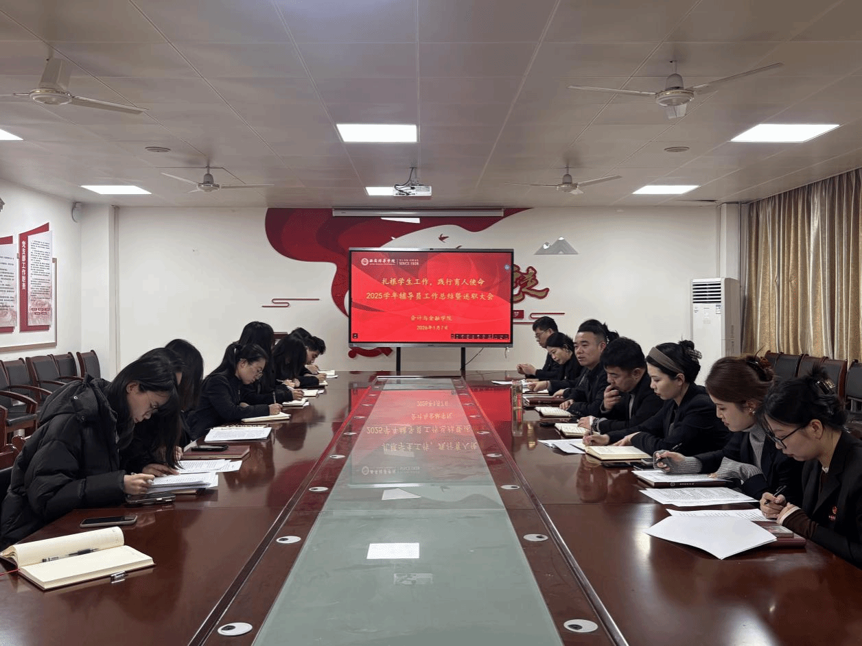 此次总结暨述职大会的召开,既是对学院2025学年学生工作的全面复盘,也是一场育人经验的深度交融与思想碰撞。通过会议,全体辅导员进一步凝聚了育人共识、明晰了工作方向。此次会议也将成为2026学年新的起点,把述职成果转化为推动工作提质增效的实际行动,坚守育人初心、牢记使命担当,以更加饱满的热情、更加务实的作风投身学生工作,为培养德智体美劳全面发展的高素质会计金融人才贡献更大力量。