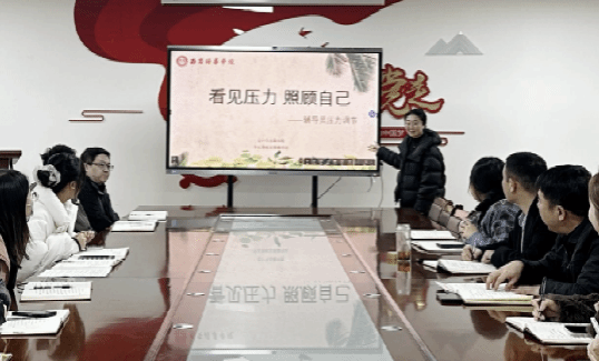 12月8日,会计与金融学院学生潜能发展辅导站在2215会议室,举办“看见压力 照顾自己——辅导员压力调节”主题培训。本次培训由赵娅囡老师主讲,旨在帮助辅导员提升压力管理能力,增强自我调适与心理韧性,以更积极健康的状态投入学生工作。