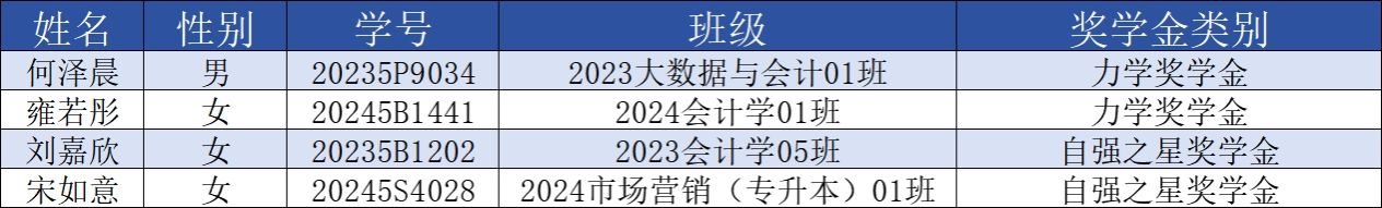 至此,关于评选西安培华学院会计与金融学院2024-2025学年力学奖学金、自强之星奖学金拟推荐校级联评工作已全部结束,共推选4名优秀的青年学子至校级参评。未来属于青年,希望寄予青年。希望会金青年在奋斗中释放青春激情、在追逐青春中实现理想,在实践中磨砺本领才干,在奉献中绽放青春之花!