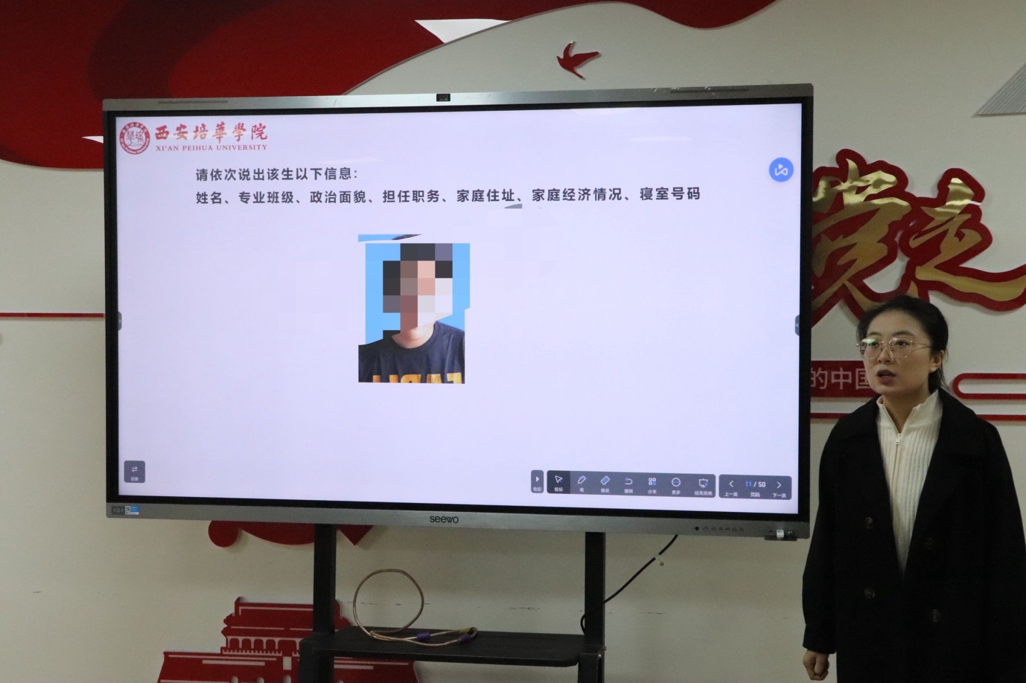活动首环节以“随机抽点”形式检验辅导员学情掌握情况。赵娅囡老师凭借扎实的工作积累,能够完整、准确地复述出5名学生的个人信息、学业状况、家庭背景等关键内容,充分展现了学院辅导员“知生、懂生、爱生”的职业素养,为全体同仁树立了“精准育人”的标杆,也凸显了学情掌握在学生工作中的基础性作用。