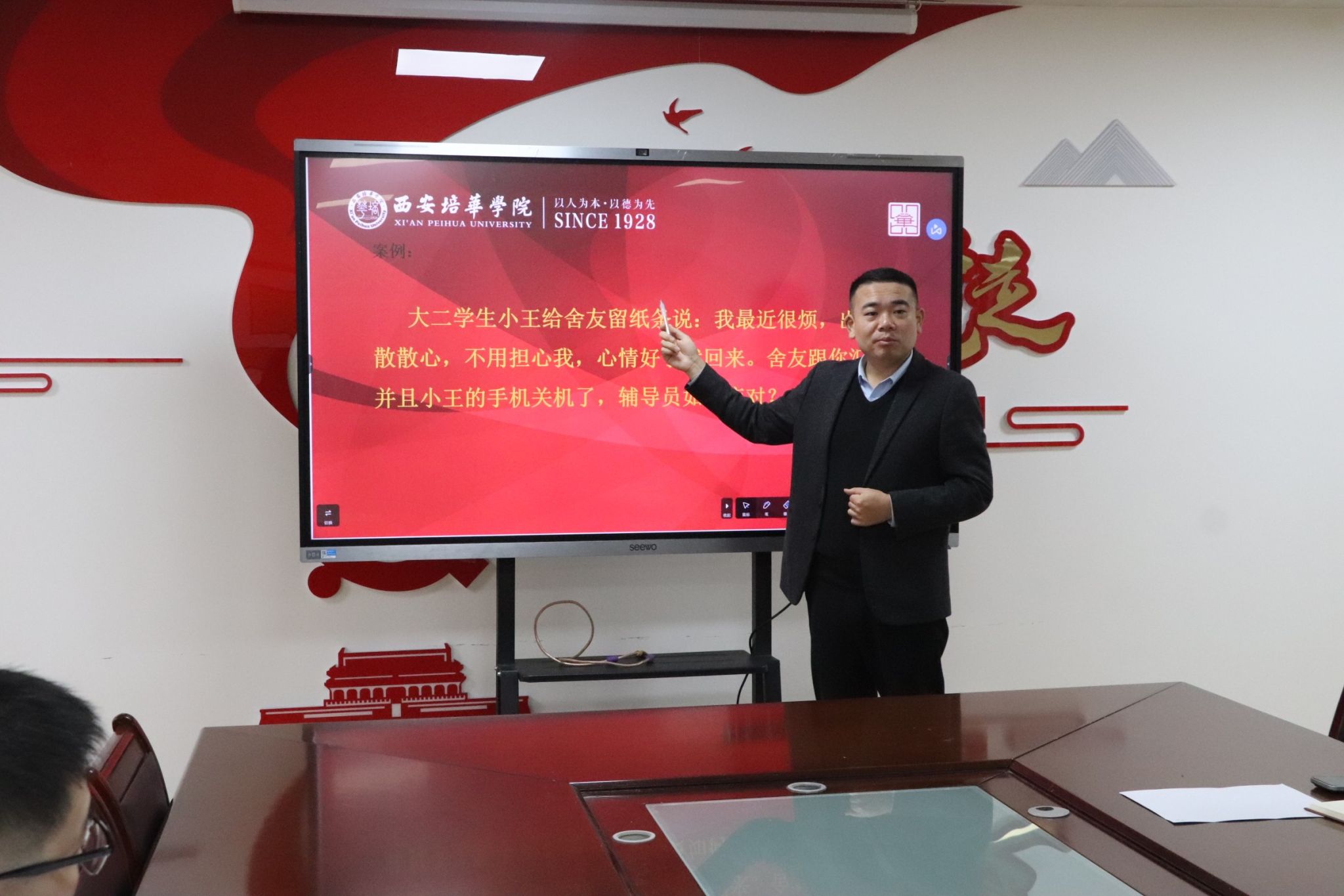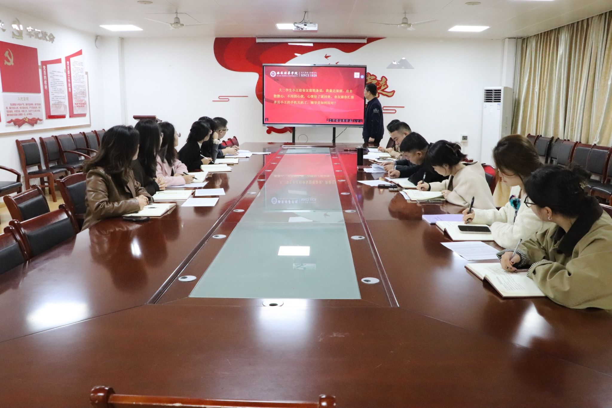 案例分析环节聚焦近期学生管理工作中的高频、难点问题,各辅导员结合自身工作经验,从“问题研判、处理流程、后续跟进”三个维度分享解决方案,思路清晰、措施务实。高乐副书记对案例进行精准点评,强调处置学生问题需“双管齐下”:一方面要第一时间汇报并锁定学生行踪,确保安全底线;另一方面要深挖问题根源,通过“家校联动”形成育人合力。刘斌院长进一步提出要求,明确“每次演练都是实战”,辅导员需以“比赛标准”规范作答,在日常工作中保持对学生心理动态的高度敏锐,真正“走进学生、走近学生”,通过案例复盘持续提升危机事件处置能力。