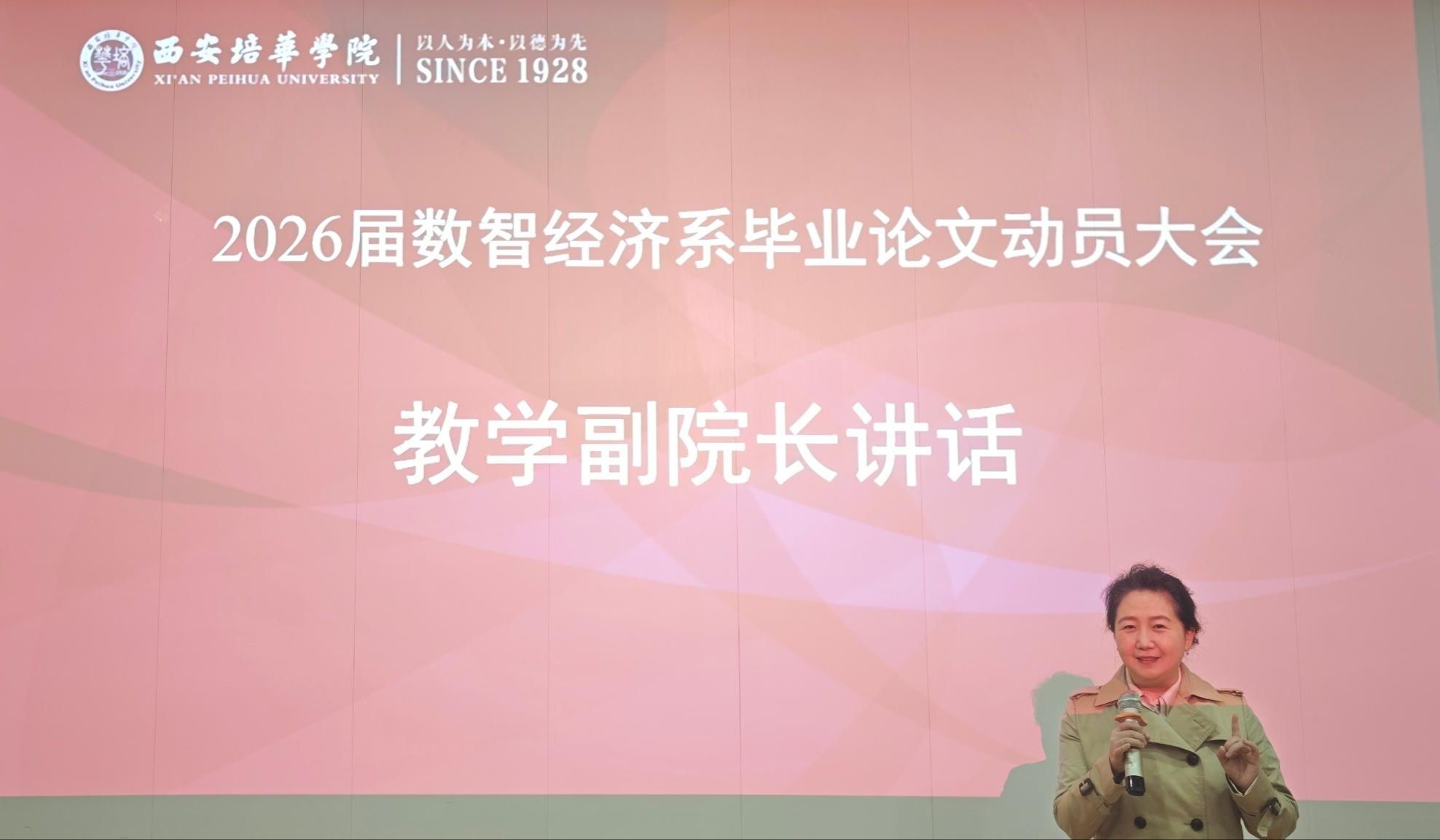 首先,孟院长对2026届毕业生进行毕业论文的动员。她强调,毕业论文是检验学生四年学习成果、综合运用专业知识解决实际问题能力以及培养初步科研创新能力的核心环节。她要求全体同学要充分认识到此项工作的严肃性与重要性,将其视为大学学习生涯的“收官之战”和走向社会或深造的“前哨站”,以高度的责任感和饱满的热情投入其中。