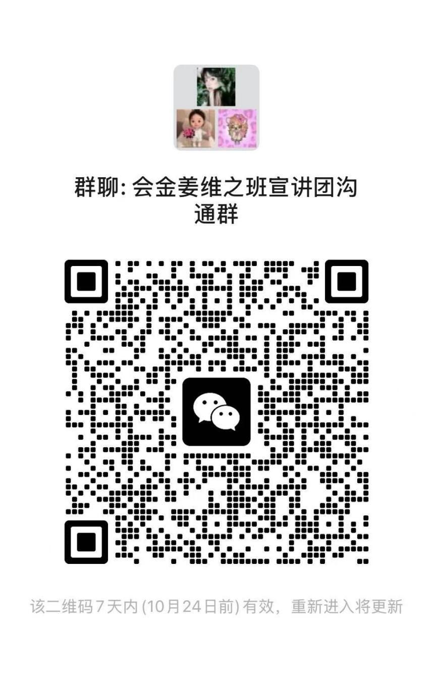 姜维之班宣讲团宣讲活动开始预约啦!请各团支部书记、社区负责人进群了解。