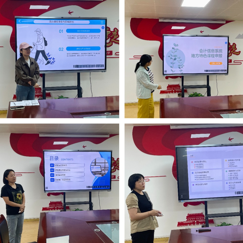 会议伊始,由《大数据与财务分析》《会计信息系统》《初级会计实务》《金融学》四门地方特色课程负责人依次进行课程立项汇报。