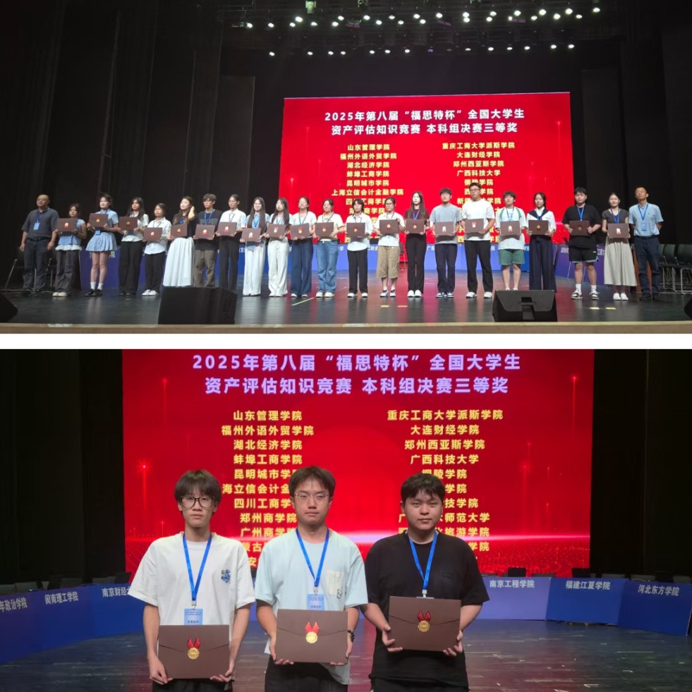 该项竞赛是我国资产评估领域最具影响力的学科竞赛之一,旨在增强行业信心、拓宽就业视野,推动人才培养从单一型向综合型转变,促进基础教育与职业资格的有效衔接,进一步激发学生的创新潜能与实践动力。期待我院师生在今后的比赛中再接再厉,再创佳绩!