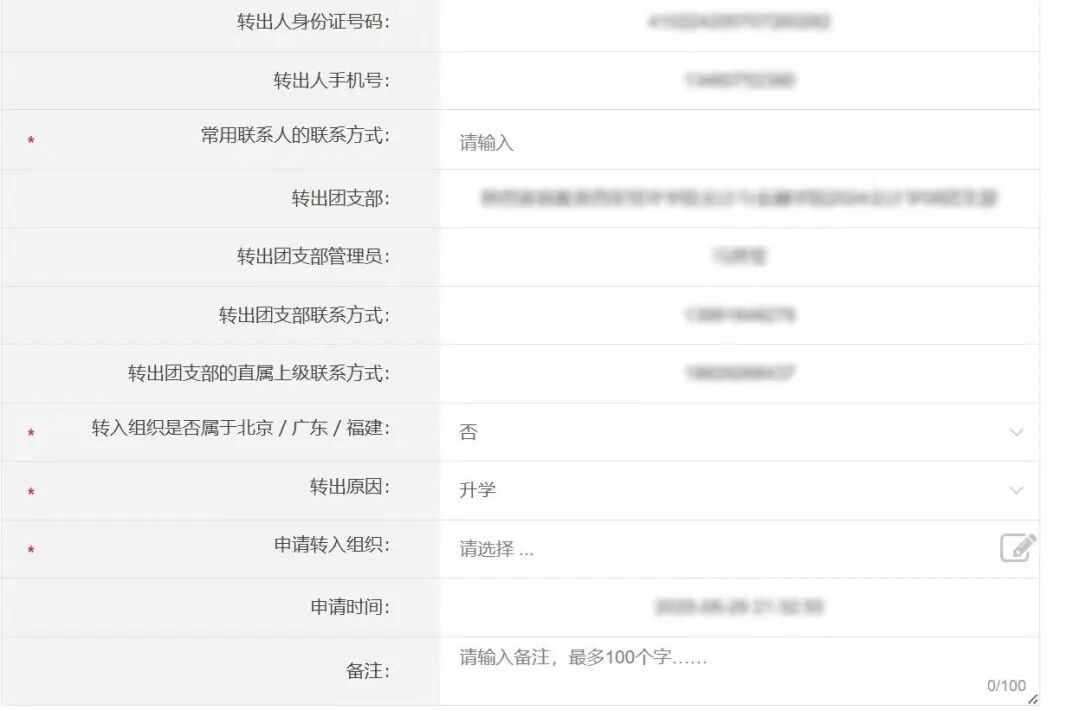 3.转入单位:线上:“智慧团建”系统中,团组织关系应转入团员入学单位的具体团支部。线下:团员组织关系介绍信的接收单位为【共青团西安培华学院委员会】。