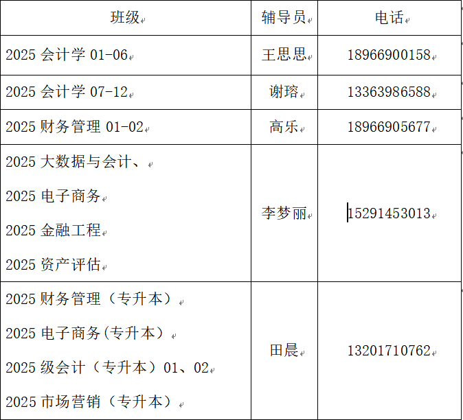 这是各位同学的辅导员电话,请各位萌新对号入座,动动小手存一下电话,也请各位同学记住,有任何困难都可以寻求辅导员老师的帮助!