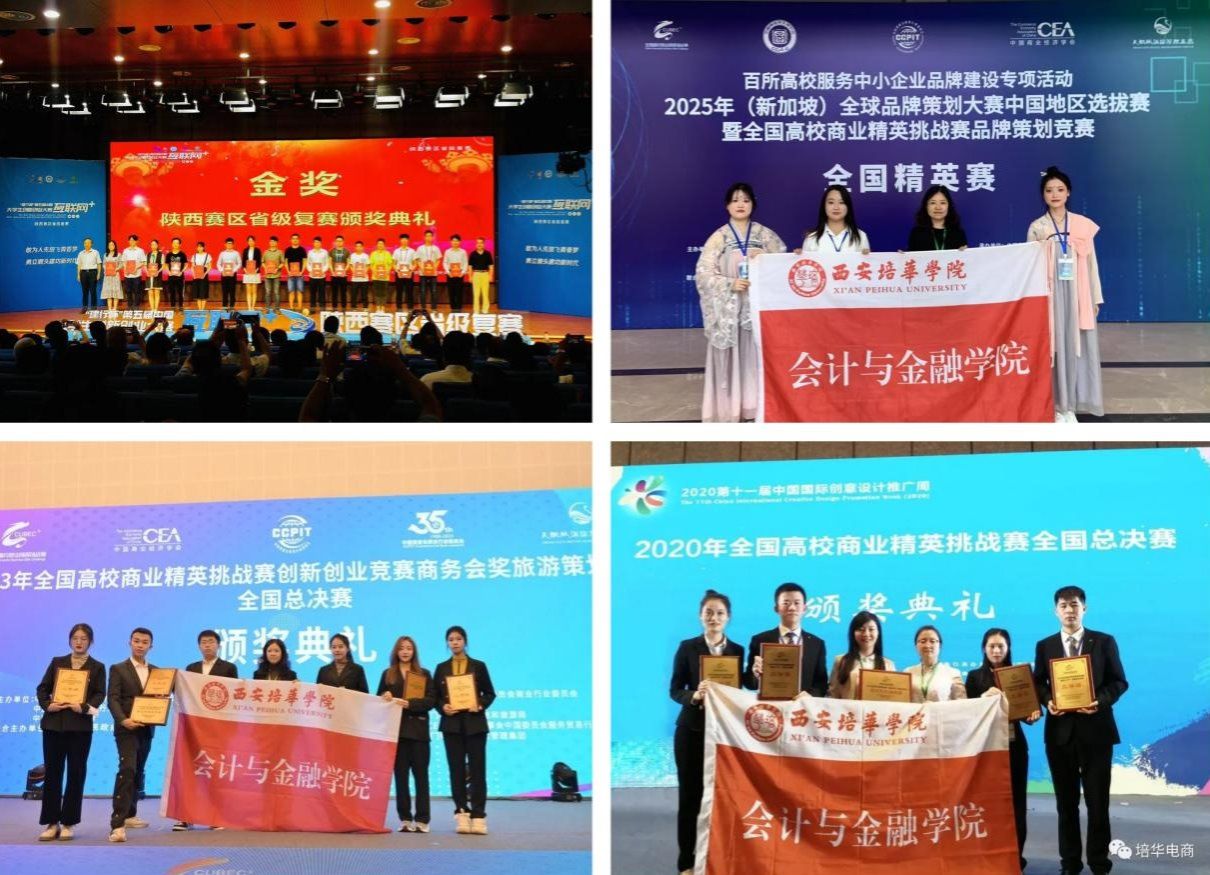 电子商务教学团队2015年获陕西省高等教育教学成果二等奖,2018年应用技术型“T”字型电子商务技能创新创业人才培养体系获省级教学成果二等奖,拥有陕西省精品资源共享课;多位教师在全国教学设计竞赛、应用型人才综合技能大赛、全国商科教学成果认定中获得一等奖。