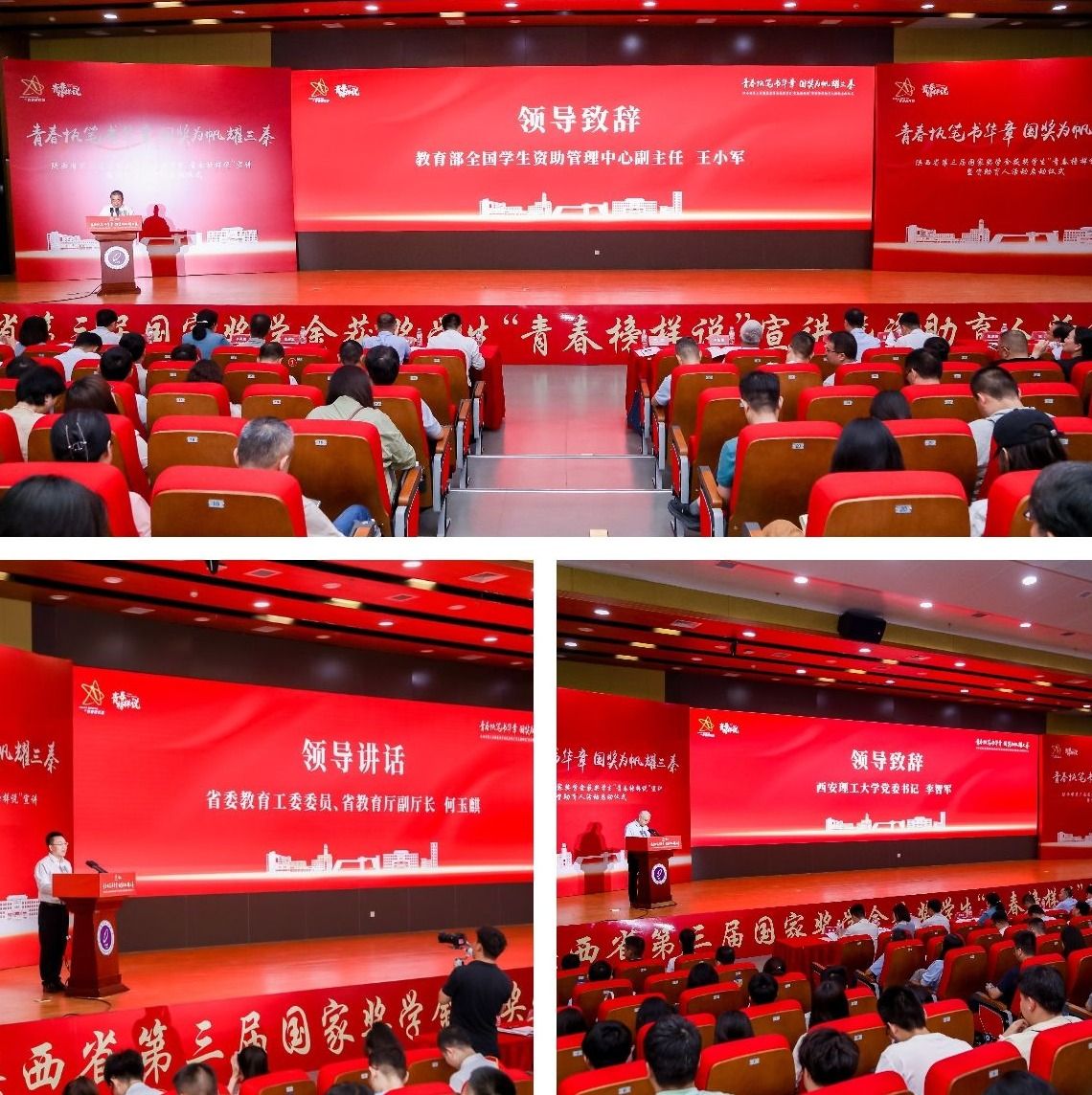 教育部全国学生资助管理中心副主任王小军在启动仪式上指出:“国家奖学金的价值不仅在于表彰优秀,更在于激发青年将个人理想融入时代使命。” 西安理工大学党委书记李智军强调:“榜样宣讲是立德树人的生动实践,期待学子从优秀事迹中汲取奋进力量。” 省委教育工委委员、省教育厅副厅长何玉麒则表示,将以活动为抓手深化“解困—育人—成才—回馈”机制,推动资助育人工作提质增效。