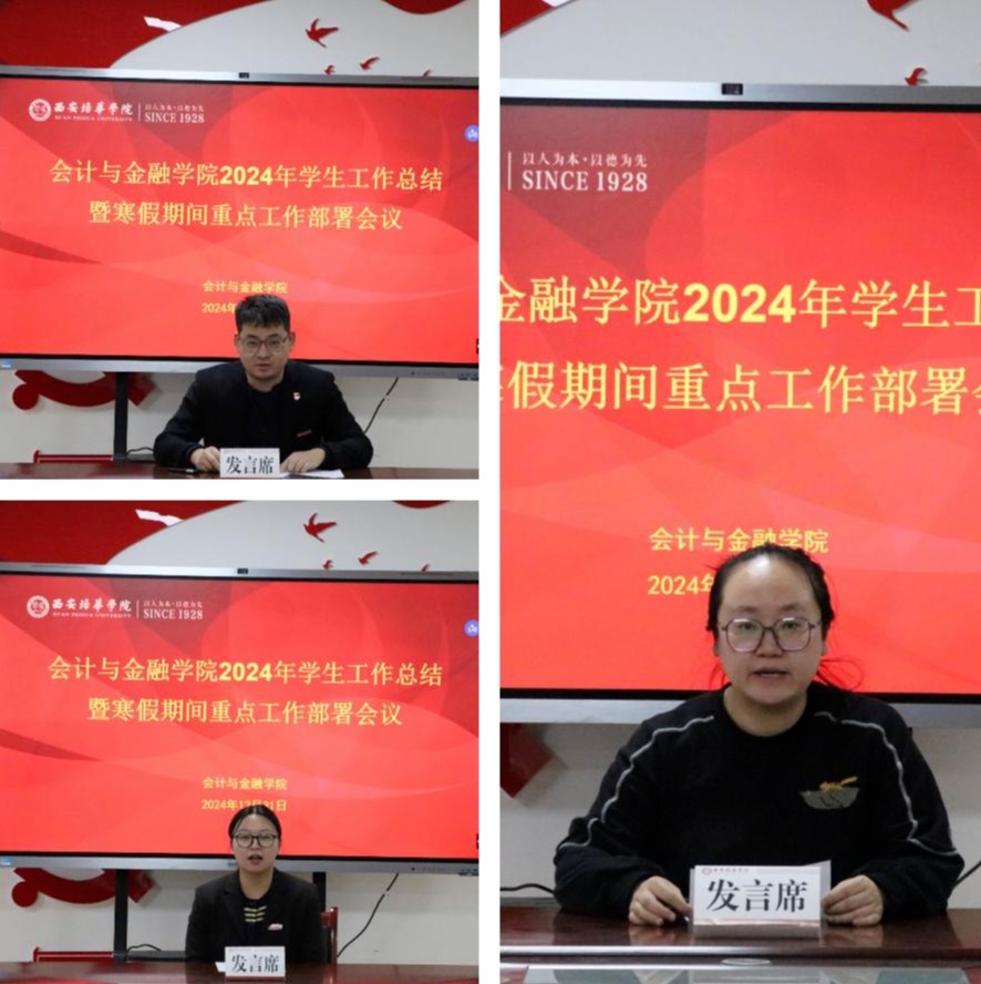 在认真聆听述职后,刘斌书记对 2024 年学院学生管理工作进行了全面总结。他充分肯定了全体辅导员一年来的辛勤付出与取得的显著成绩,同时也精准指出了工作中存在的问题与挑战。展望 2025 年,刘斌书记对学生管理工作提出了明确要求,同时对寒假五育并举工作进行安排,强调要进一步加强思想政治引领,创新工作方法,提升服务质量,打造更加优良的育人环境,助力学生全面发展。此次述职大会不仅是对过去一年工作的复盘,更是为新一年工作谋篇布局的重要契机。会计与金融学院辅导员团队将以此次会议为新起点,砥砺奋进,为学院学生工作再上新台阶贡献力量,开启 2025 年学生管理新篇章。