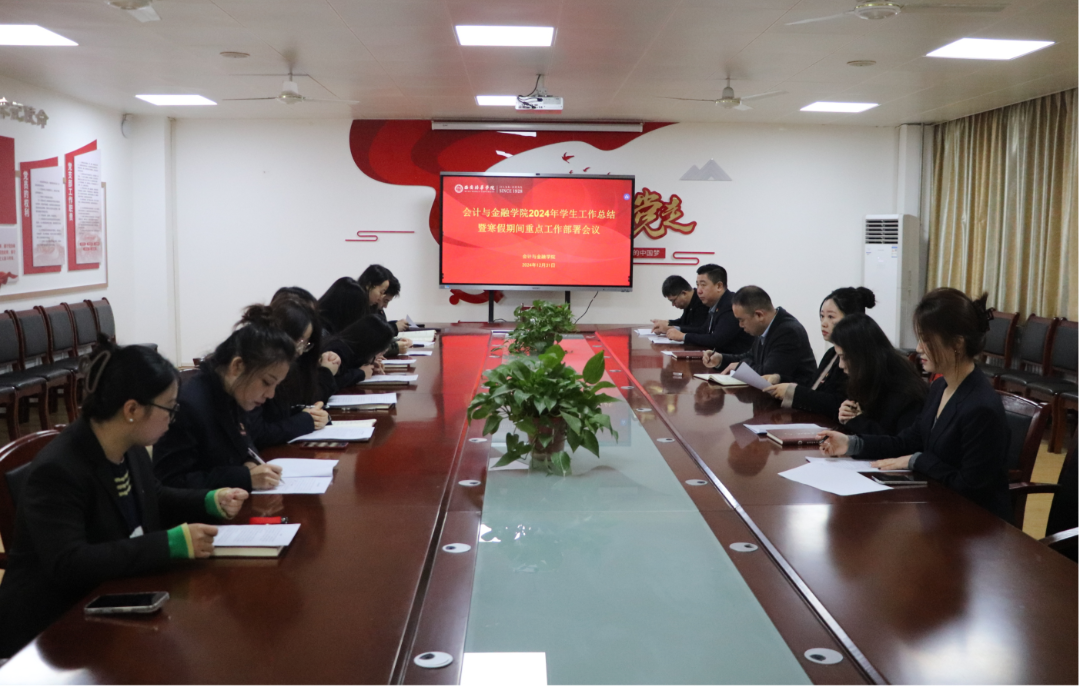2024 年 12 月 31 日上午 ,会计与金融学院2024年学生工作总结暨寒假期间重点工作部署会议在博远楼 2115 会议室准时召开。此次会议汇聚了学院的学生管理核心领导与全体辅导员老师,旨在全面回顾过去一年的工作成效,展望未来发展方向,为学生管理工作的持续优化注入动力。