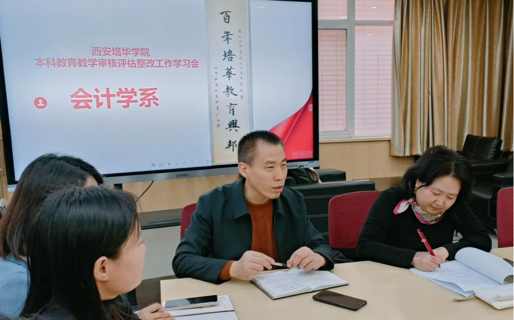 会议由会计学系副主任李丹领学了《西安培华学院本科教育教学审核评估整改工作学习材料》。