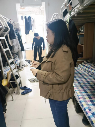 检查过程中,老师们走访了19号楼各个宿舍,对“五无五好”宿舍检查中发现的重点问题进行再次走访。重点检查楼道区域是否有杂物及垃圾堆积、宿舍内通风情况、网络线路及日常用电安全、阳台物品存放等细节,从安全、卫生、整洁度、文化文明四个方面进行对学生宿舍进行全面整改。