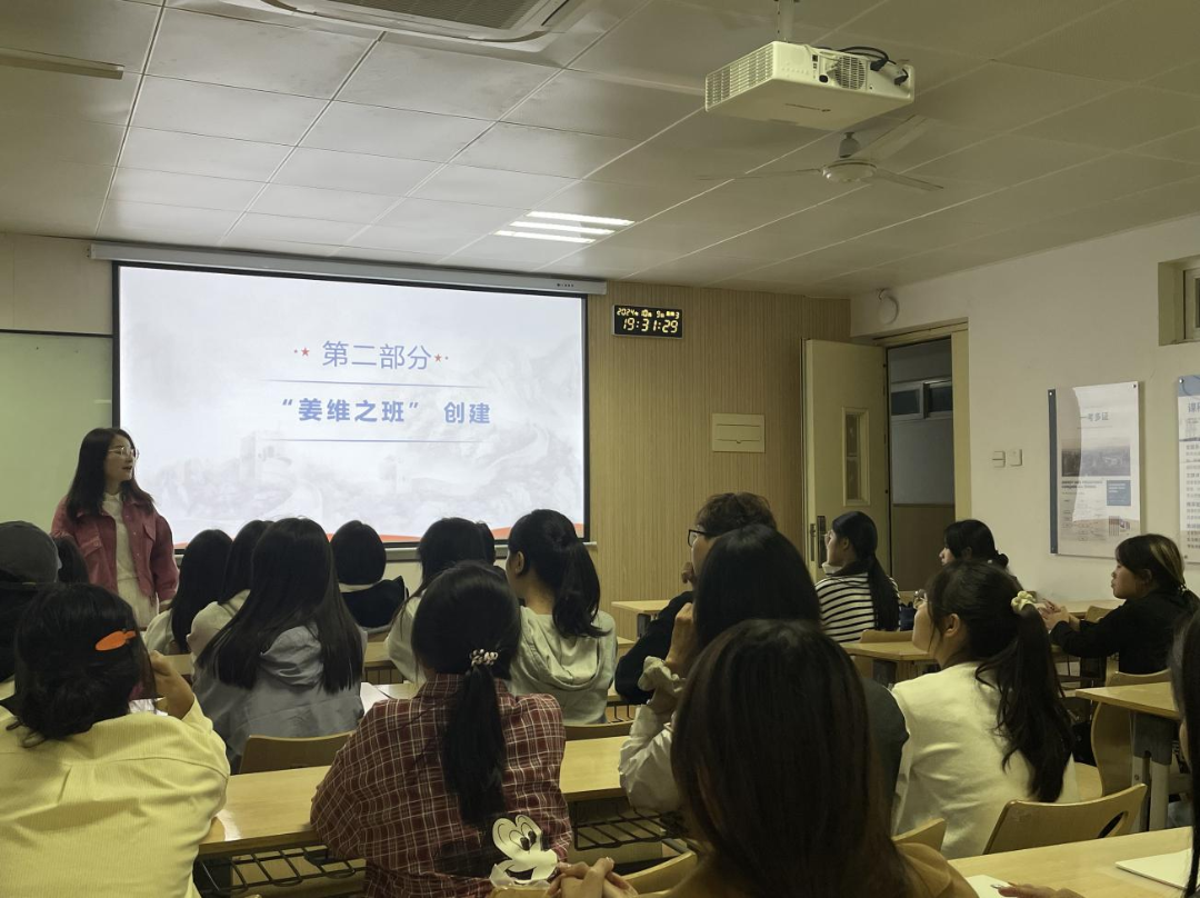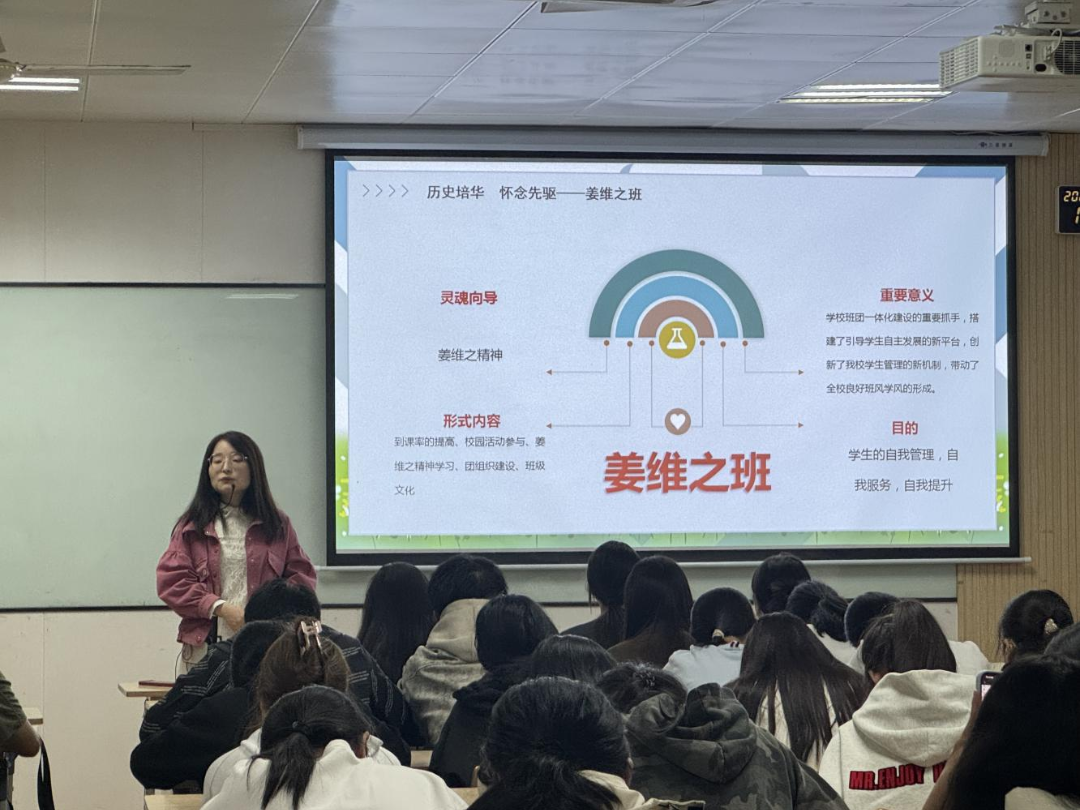“姜维之班”是我校落实立德树人根本任务,深化“三全育人”,强化班团建设、锻炼学生“八大能力”、满足学生成长发展需求和期待,推进我校校风建设、教风建设、学风建设、班风建设和大学生思想政治教育的有效载体。会计与金融学院新生辅导员作为宣讲人,开展了新生入学教育之“姜维之班”专题宣讲。