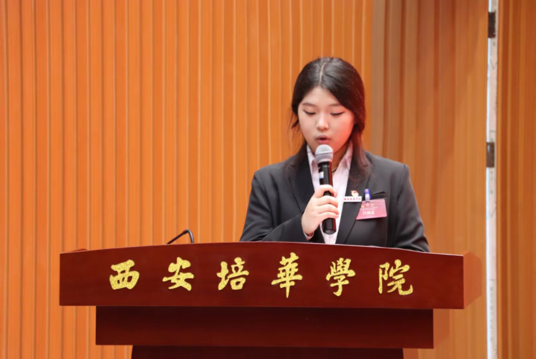 第三项:西安培华学院校学生会主席团代表黄菁致辞
