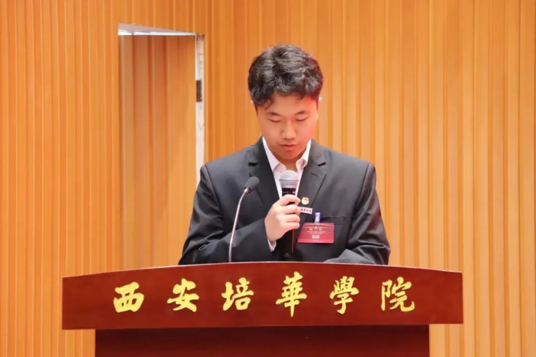 第三项:会计与金融学院学生会主席团成员张佑庭宣读《西安培华学院会计与金融学院第三次学生代表大会提案工作报告》