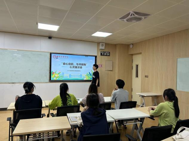 为了缓解同学们的忧郁焦虑情绪,2024 年 5 月 13 日,会计与金融学院学生潜能发展辅导站在博远楼 2201 举办了一场名为“心灵相谈所”的心理读书分享会。