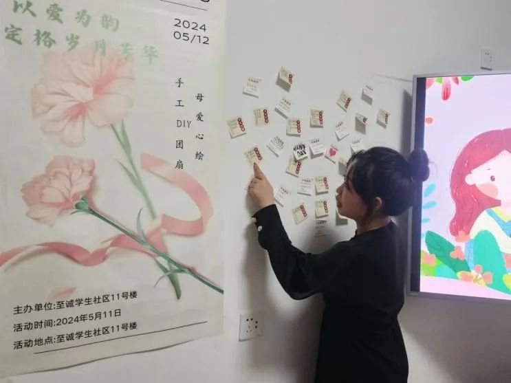 为贯彻落实党的二十大关于深化全民德育教育的重要部署,进一步推进中华“孝”文化进社区,营造关爱父母,尊敬长辈的浓厚氛围,引领新时代青年的崇高风尚,2024年5月12日,至诚学生社区在11号公寓综合办公室开展“以爱为韵,定格岁月芳华”主题活动。