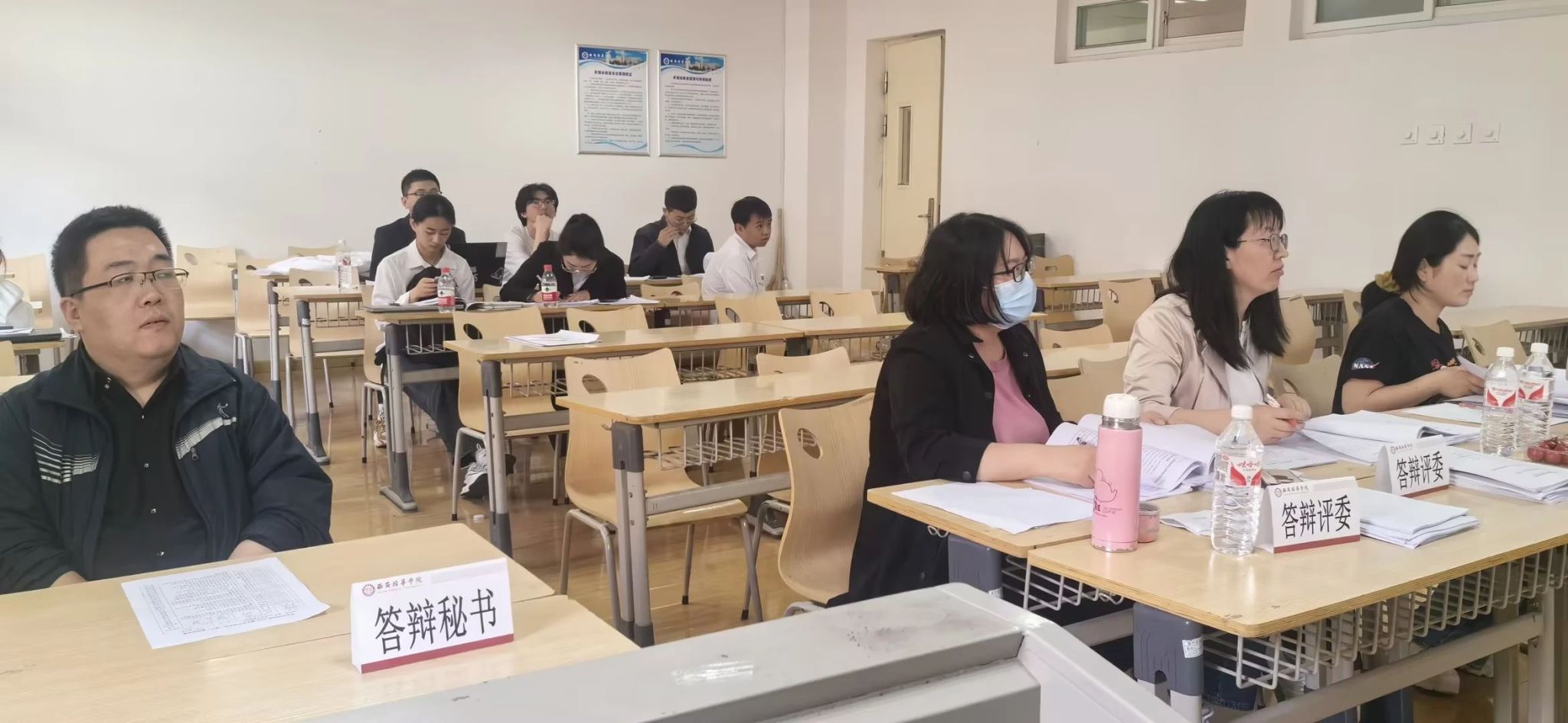 西安培华学院校长助理鲍伟、教务管理中心主任铁卫在慰问、巡视,也对目前学院答辩工作提出了建议,还谈到:希望全院教师及毕业生把牢质量关,进一步认真打磨论文,为本科生涯交出一份高质量的答卷,让答辩环节成为提升毕业生满意度的一个有力抓手。