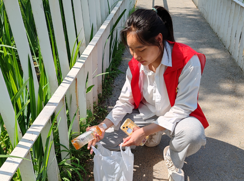活动当天,阳光明媚,微风拂面。数名大学生志愿者身穿统一的服装,手持垃圾袋和夹子,满怀热情地投入到捡垃圾的行动中。他们沿着道路、草坪、花坛等区域,认真搜寻并捡拾垃圾。