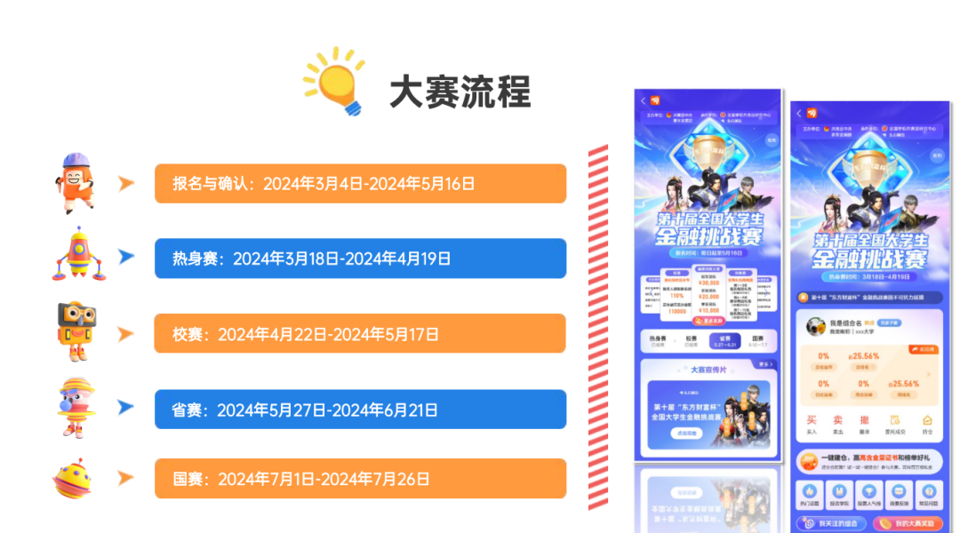 校赛阶段:学生以个人名义参赛,进行模拟交易。各校综合收益率排名前30%的学生进入省赛。