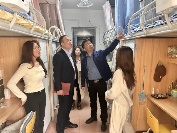 为响应爱国卫生运动暨寝室劳动教育,深入落实劳动教育效果, 本周三寝室劳动教育日,会计与金融学院党委书记兼行政副院长刘斌、党委副书记高乐带领全体辅导员走访了至诚社区6号楼学生宿舍。