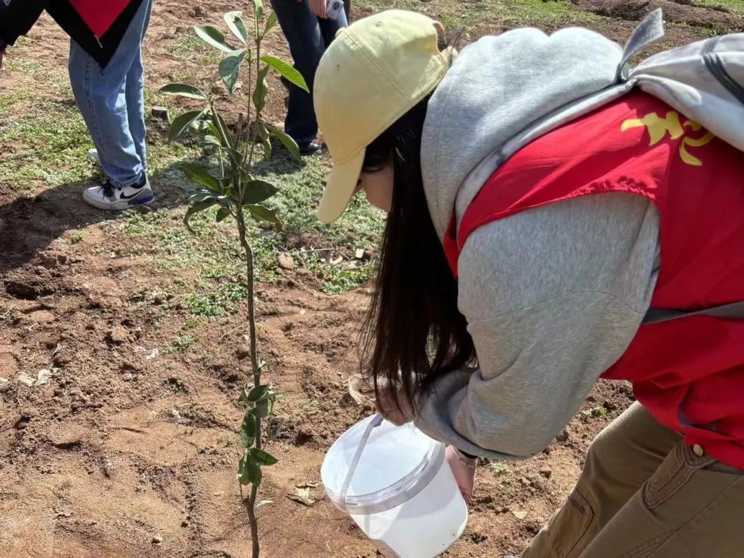 为深入践行习近平总书记生态文明建设思想,引导学生树立生态文明意识。3月12日,在第46个植树节到来之际,会计与金融学院青年志愿者协会的同学们乘着春风、洋溢着笑容,在我校劳动教育实践基地开展以“浇”个朋友为主题的植树节活动,以实际行动践行绿色发展的理念,为整个校园增添一抹亮眼绿色。