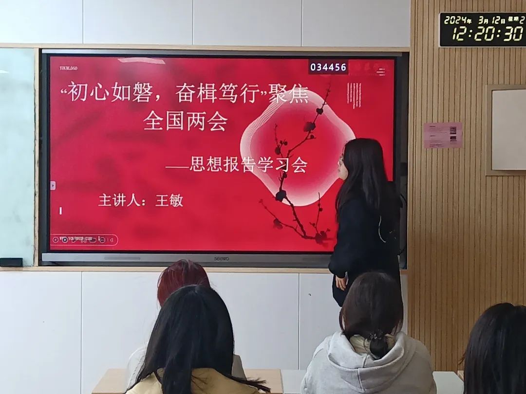 2024年全国两会标注下新的方位,传递出咬定青山不放松的坚定信心,吹响了风雨无阻向前行的奋进号角。借此会计与金融学院积极响应两会2024年3月12日,我院在2201教室就全国两会组织召开思想报告学习会。会上,我们就会议内容进行汇报总结,分享学习。