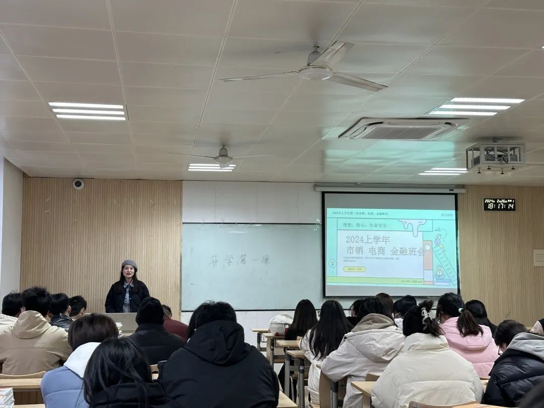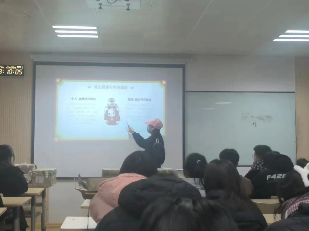 本次班会辅导员主要向同学们深入推进理想信念教育、收心教育、学风建设指导、文明行为教育、校园生活健康教育等,引导学生健康合理地开启新学期学习生活。