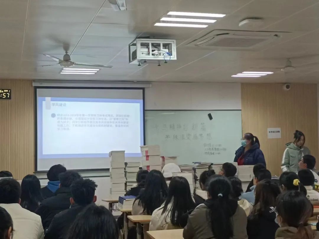 其次,以“姜维之班”创建为抓手,指导学生积极开展优良学风建设、班风建设,营造良好的学习氛围。积极引导学生,调整心态和生活习惯,从松弛的生活状态中聚焦到专业学习、能力锻炼上,逐步养成科学、规律的生活习惯,保持严谨的学风,合理规划大学学习和生活。帮助学生制定新学期学业规划,明确学习目标,增强学习动力。结合 2023-2024 学年第一学期学生学习和考试情况,引导学生查漏补缺,合理规划大学学习和生活。