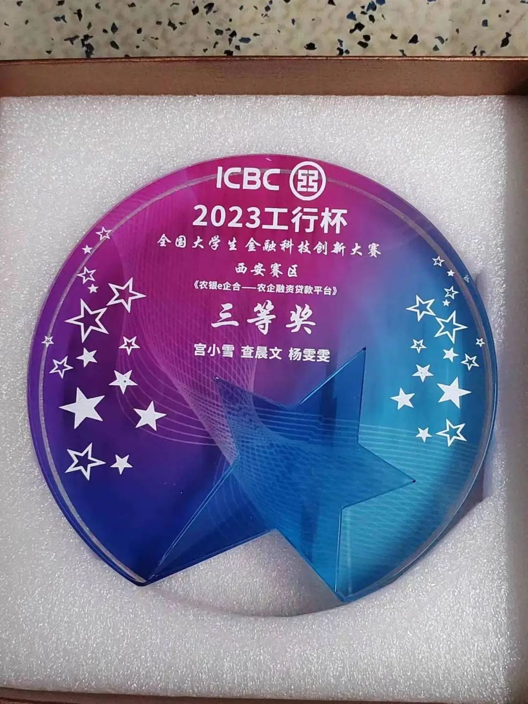 2023年12月28日,周四下午2:00获奖同学及指导教师受邀参加了在工商银行西安分行举办的西安赛区的颁奖典礼,对我院在此次大赛中获奖的学生团队、指导老师进行了表彰。