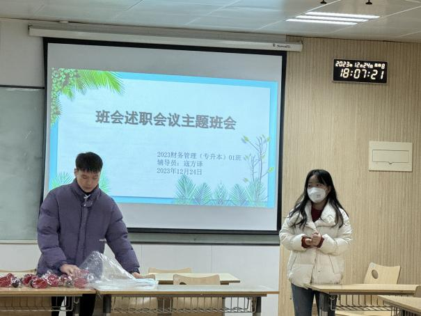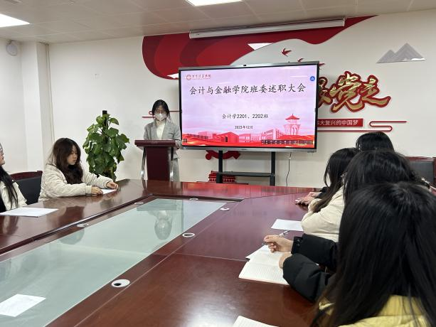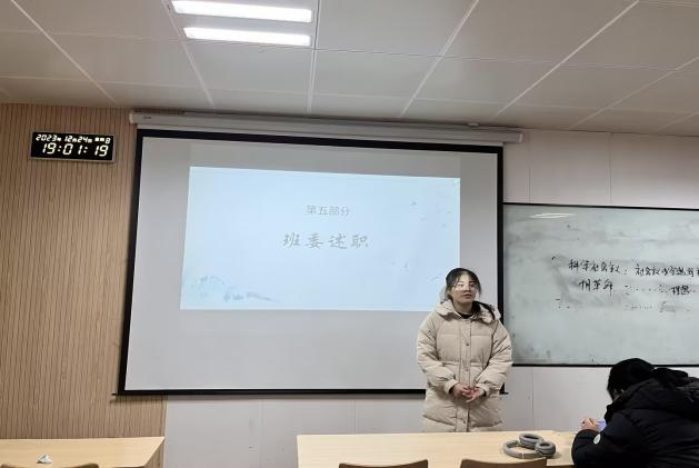 2023年12月24日晚,会计与金融学院特组织全院各班级开展班干部述职活动,班干部年度述职不仅是对过去一年工作的总结,更是对未来发展的期许与规划。在这场述职活动中,班干部们倾诉心声,畅谈感受,为班级发展献言献策。他们的责任感和使命感得到了进一步增强,管理能力和沟通能力也得到了锻炼和提升。班级的凝聚力和向心力在此刻汇聚成一股强大的力量,引领着班级同学共同前行。