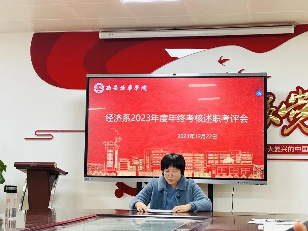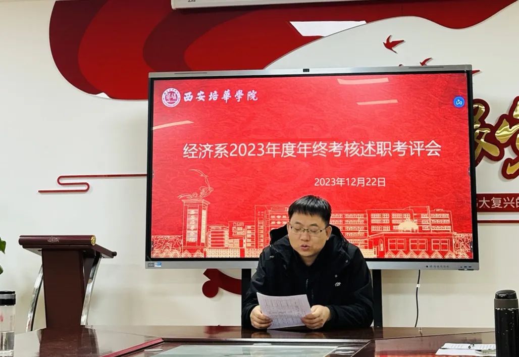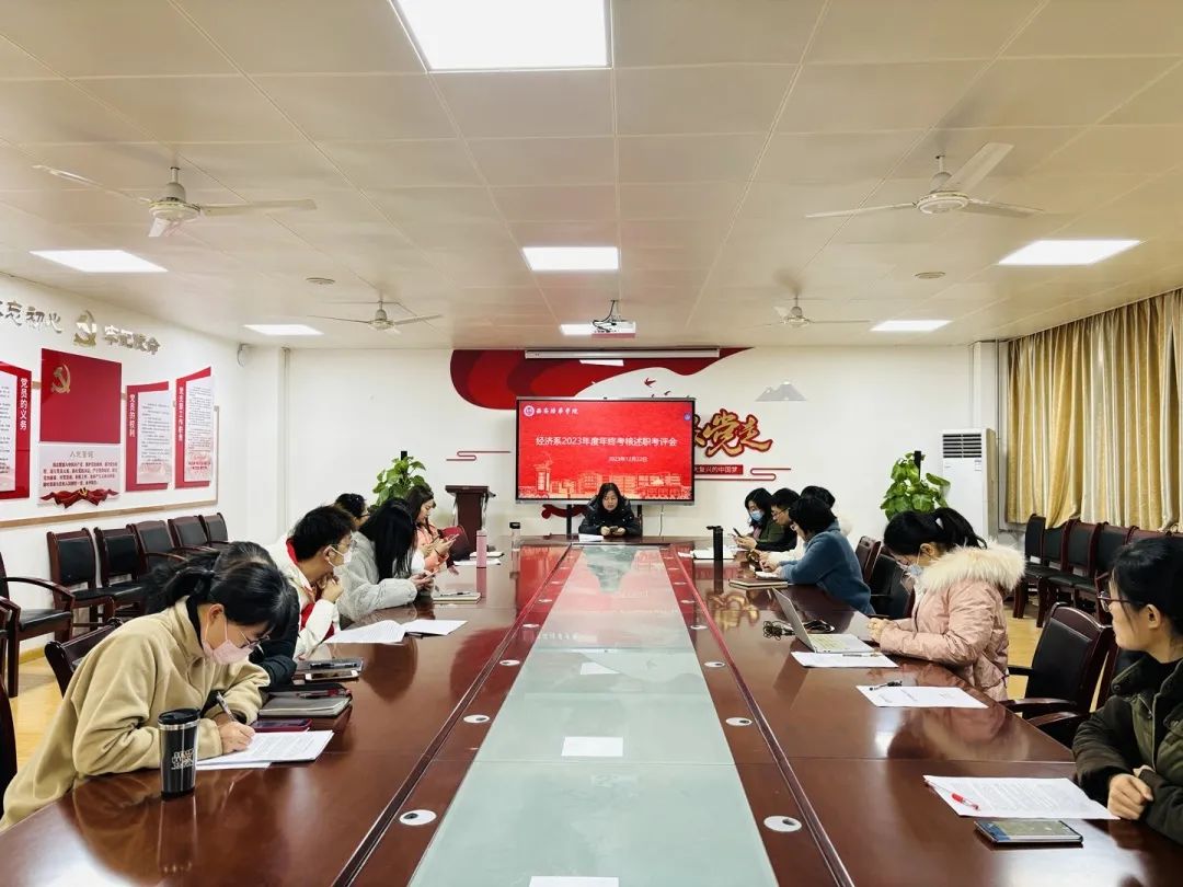 2023年即将结束,为了对本年度教学、科研、行政等工作完成情况进行梳理与总结,经济系于2023年12月22日上午在2115会议室召开了2023年度年终考核述职考评会,系主任、副主任、专业带头人和各位老师对本年工作完成情况进行述职。