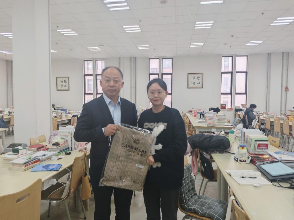 近期学院领导及辅导员也分别前往图书馆、学生社区自习室、宿舍等地方,亲切看望考研学生,关心和鼓励他们,为学生亲手送上礼物,给他们带去温暖和祝福。