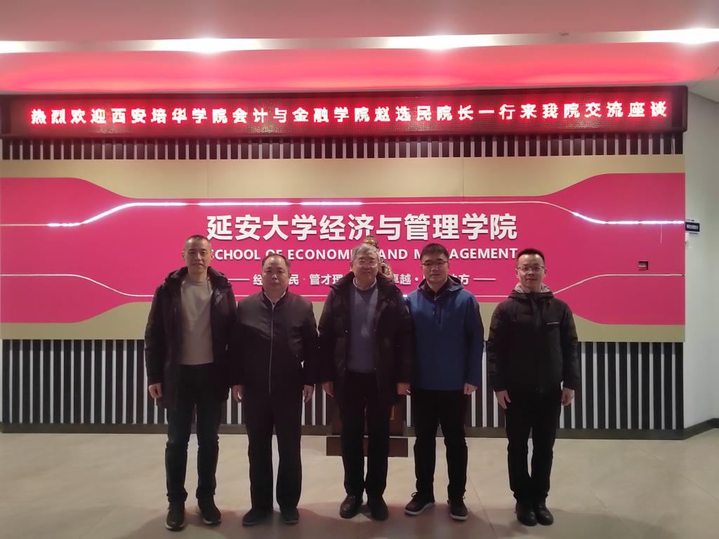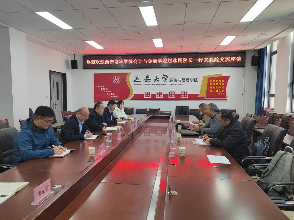 为进一步推进会计与金融学院“国一流”会计学专业申硕工作,提升学院商科建设水平。会计与金融学院院长赵选民于2023.12.07日带队前往延安大学经济与管理学院开展申硕调研工作,双方出席本次调研交流活动的人员包括延安大学经济与管理学院院长王进、书记付旭、副院长陈云桥、管理系主任卜娇、会计学专业骨干教师张焕平以及经济学专业骨干教师焦光前。西安培华学院会计与金融学院教学副院长杨仕鹏、会计系主任王小毅以及管理系青年教师张哲。