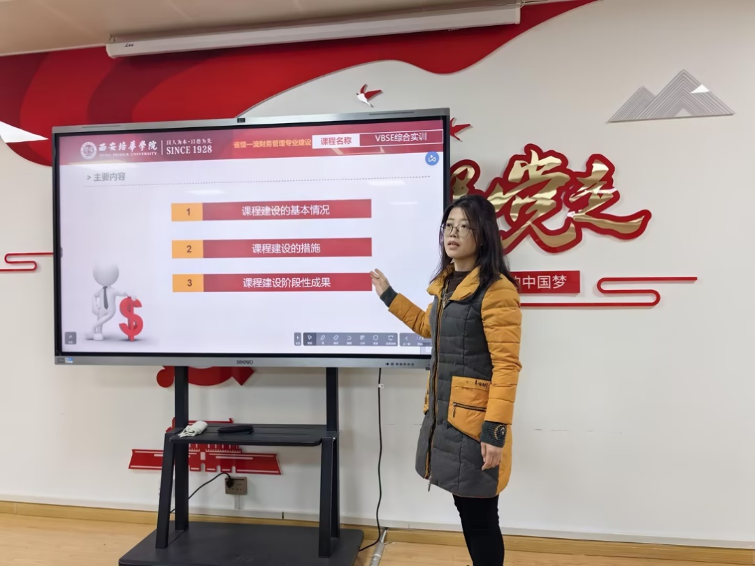 其次,汇报的课程是管理学团队的《VBSE综合实训》,本门课程负责人张亚娜老师带领课程组成员,在课程改革的道路上也是硕果累累。2021年获批“省级一流课程”;2023年出版教材;同时申报教学改革课题,带领学生参加课程相关大赛取得优异成绩。