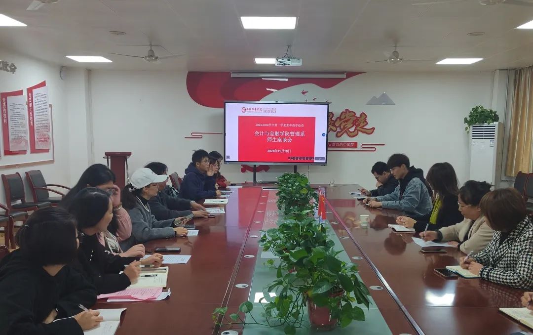 为进一步提升教学质量,科学化人才培养,2023年11月10日,会计与金融学院管理系召开了2023-2024学年第一学期期中教学检查师生座谈会。参会人员包括管理系全体教师及财务管理和人力资源管理部分学生代表。