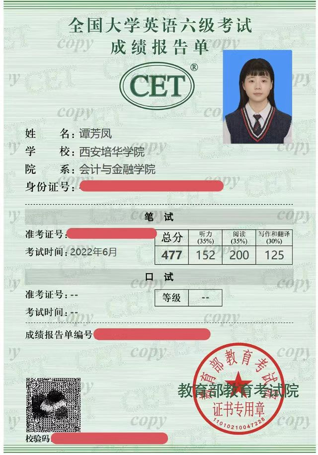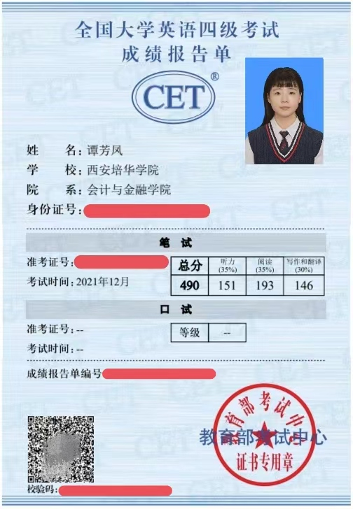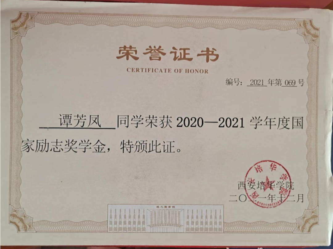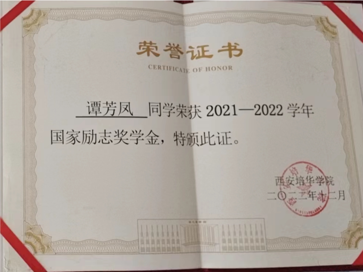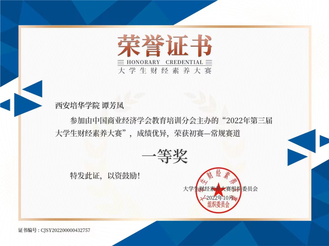 谭芳凤,中共预备党员,2020年9月就读于西安培华学院会计与金融学院会计学专业。在思想方面,拥护中国共产党的领导,坚定自身的政治方向,尊师重道、积极进取、严于律己,努力向党组织靠拢,以党员标准要求自己,获评“优秀共青团员”。在学习方面,始终牢记学习是学生的第一要务,始终保持谦卑的学习态度,勤奋好学,积极向上。大学三年,专业排名始终保持在班级第一,年级前5%,并以均分95+的成绩从金融工程辅修专业毕业;一次性通过英语四六级考试,并取得会计专业技术资格初级证书、计算机二级等级证书和普通话水平测试二级甲等证书;连续两次获得国家励志奖学金,此外,还获得了外语奖学金,并被评为“自强之星”和“三好学生”。在竞赛方面,踊跃报名各类比赛,其中带领小组成员参与“一带一路暨金砖国家技能发展与技术创新大赛”,获得全国三等奖;参与“新道数智人才杯”沙盘大赛,获得陕西省赛三等奖;参加“互联网+”等创新大赛获得院校级奖项等。在实践方面,主动参加班级、组织和第二课堂活动,以及校内外各种志愿活动,为社会贡献自己的一份力量。在疫情期间积极协助学校疫情防控工作,并多次获得志愿服务证书。