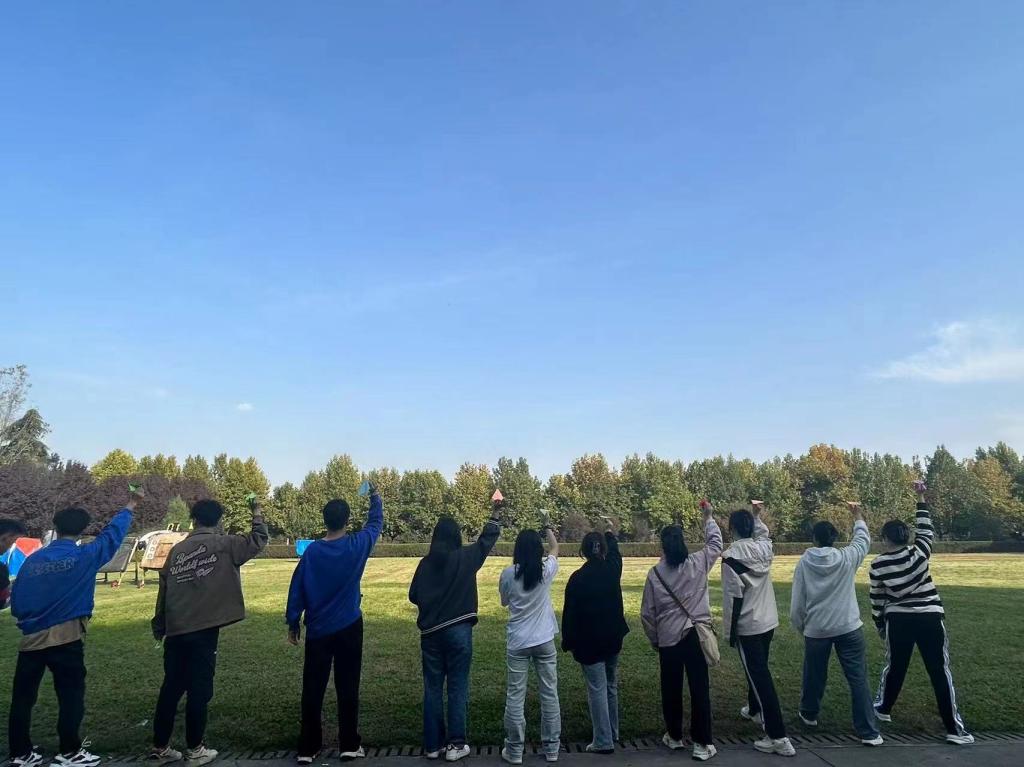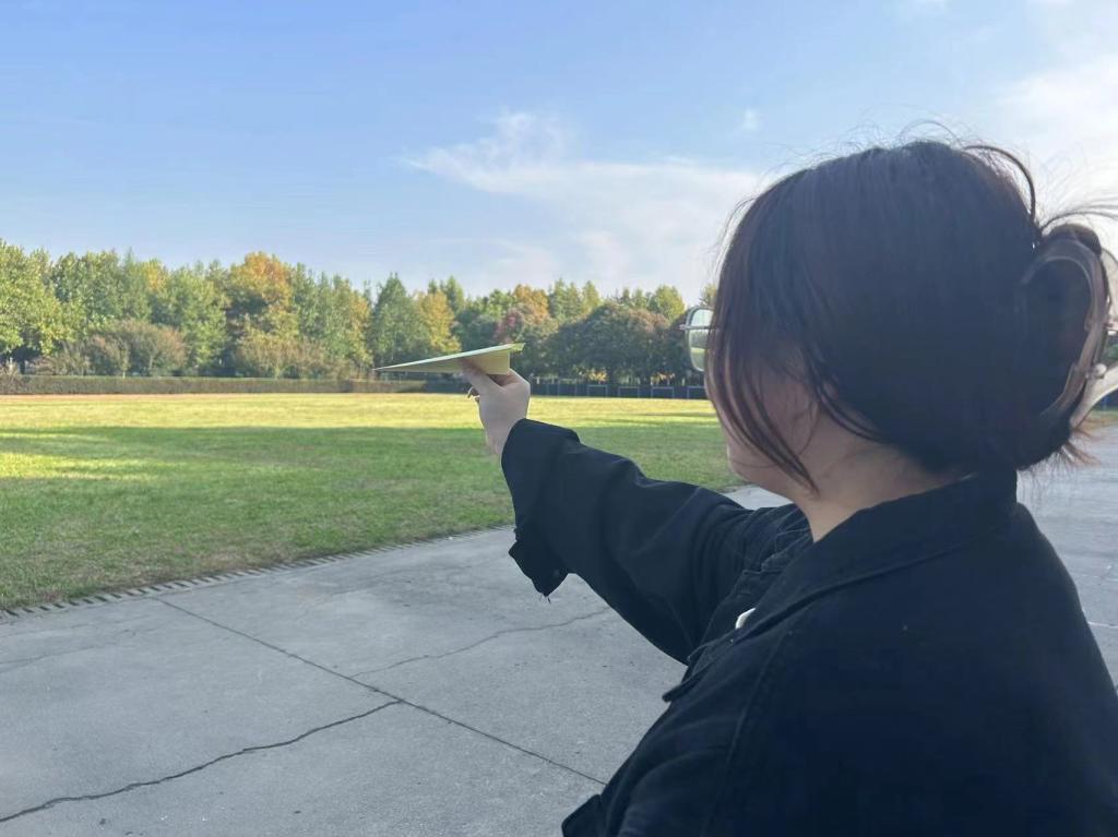 纸飞机注定要飞翔,全班同学下楼到空旷草地共同放飞纸飞机,只见那纸飞机飞呀飞,飞走的是烦恼,是不快,丢掉烦恼,放弃内耗,你就是最好的自己。
