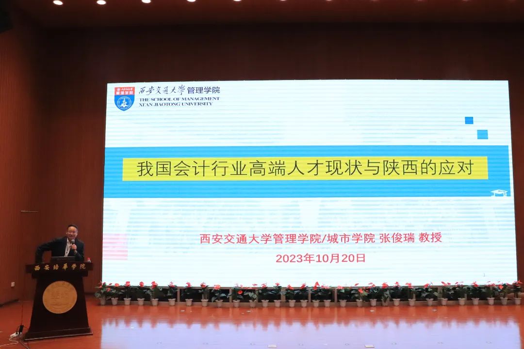 论坛第二阶段西安交通大学管理学院教授、博士生导师张俊瑞开讲《我国会计行业高端人才现状与陕西的应对》,张教授从会计人才对于国家经济的重要性讲起,将会计学科、会计行业、会计发展做了一个系统梳理,对陕西会计在全国的地位做了介绍,以高度的学术性深入浅出地融入趣味性,幽默风趣地分享了我国会计行业高端人才现状与陕西的应对,并对同学们的未来职业规划做出建议,获得与会师生热烈掌声。