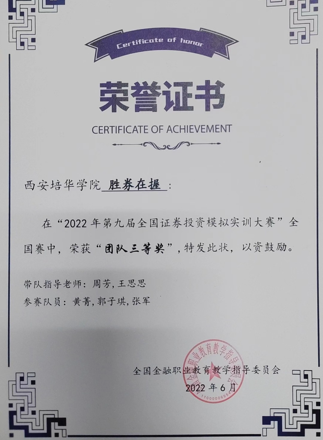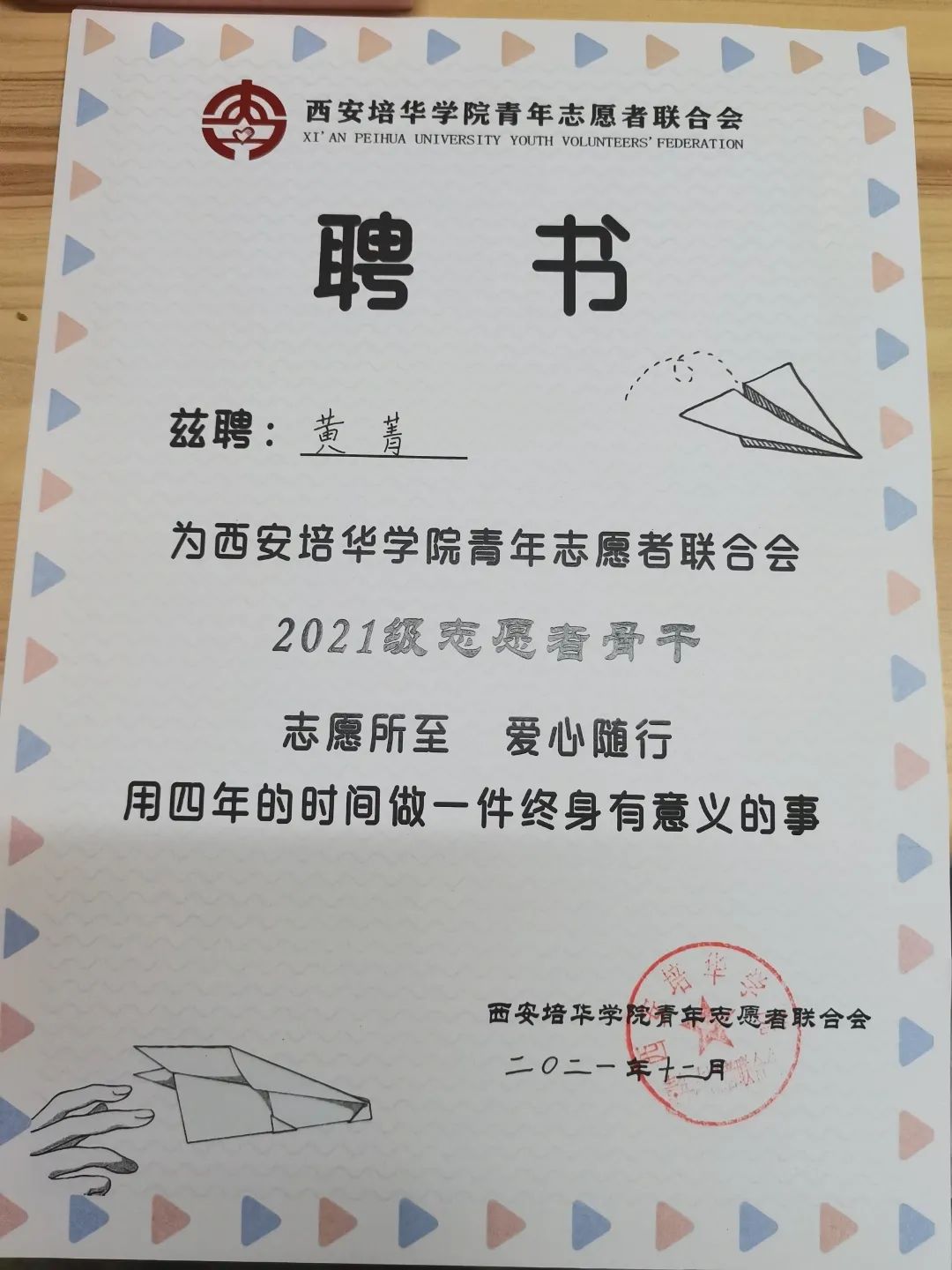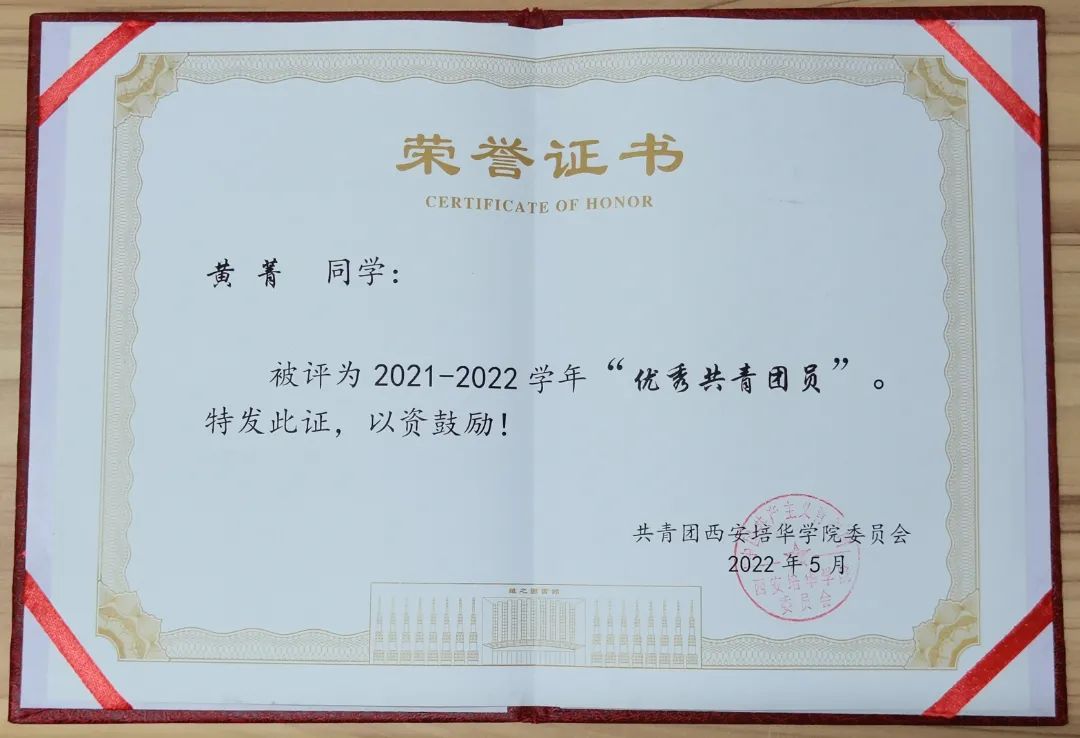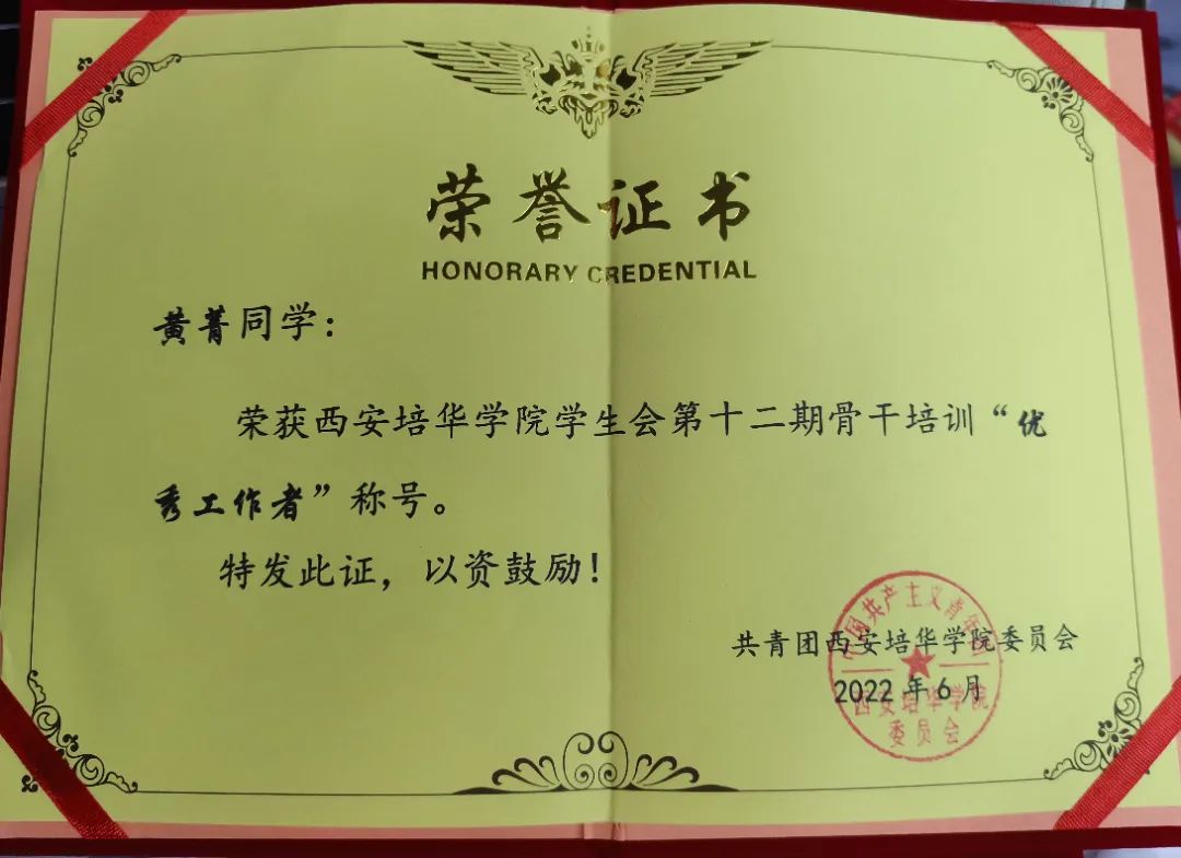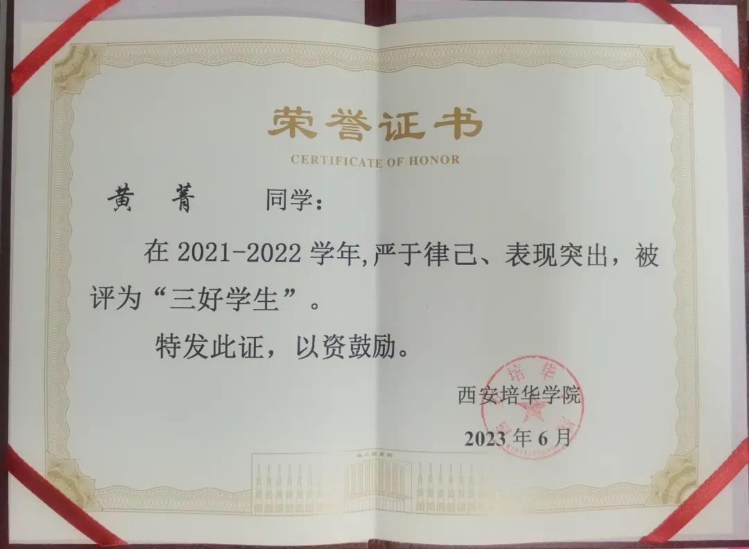 黄菁,中共预备党员,会计与金融学院会计学本科生,现担任西安培华学院学生会主席团成员,西安培华学院云梯青年宣讲团成员,会计与金融学院会计学专业代言人,会计学2102班团支书。力学笃行,学业水平优异,在2021-2022和2022-2023学年中,专业成绩分别在年级排名第一、第二,曾获2021-2022学年西安培华学院一等奖学金,播音与主持艺术专业辅修毕业证书,2022年被评为校优秀共青团员、2023年被评为校“新时代好青年”“三好学生”;竞赛成果丰富,曾获第九届全国证券投资模拟实训大赛国家三等奖、第八届“中金所杯”全国大学生金融知识大赛全国优胜奖、第九届中国国际“互联网+”大学生创新创业大赛陕西赛区铜奖、第三届全国大学生职业发展大赛校赛一等奖;躬行实践,五育并举,曾获陕西省学生联合会新闻传媒中心2023年春季“青春赋能”实训计划项目“优秀实训生、成为陕西省青马工程第十七期高校班学员、陕西高校青年“喜迎二十大”联合宣讲会宣讲人、“这十年·青年讲”高校联合宣讲会西安培华学院宣讲人代表,积极参加各类社会实践,暑期三下乡社会实践项目获团中央立项两项,志愿服务上积极作为,曾获2023年“五育并举”系列实践活动“先进个人”、2022年疫情防控志愿服务证书,志愿时长达214小时,团学工作一线积极实践,获优秀工作者荣誉多项,展现出新时代青年的责任担当。