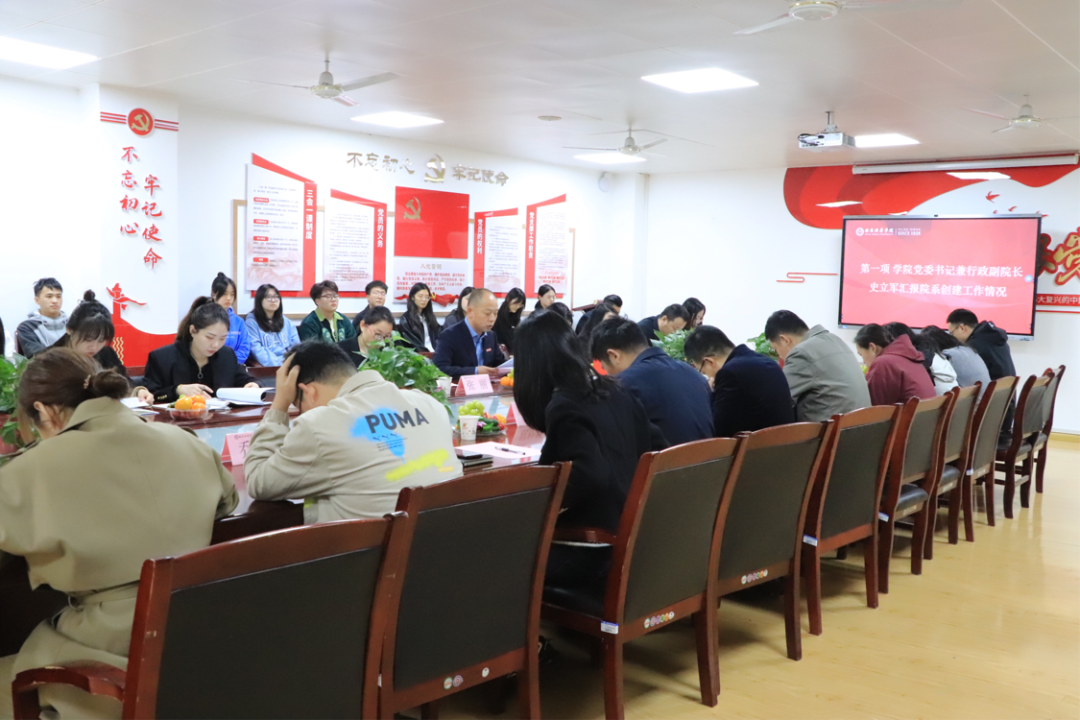 会议第一项由党委书记兼副院长史立军汇报我院2022-2023学年“姜维之班”创建工作的基本情况。2022-2023学年,我院82个班级申请参加“姜维之班”创建,达到创建全覆盖目标。史立军院长指出,在下一步的工作中,我院将强化对创建指标的学习和认识,对标对表,规范推进班级建设工作,同时,深入剖析00后学生性格特征,不断完善院级创建指标和创建路径,他还指出,院系将加大监督力度,加强制度落实,在提高院系各部门粘合度,整合资源齐发力等方面多下功夫。