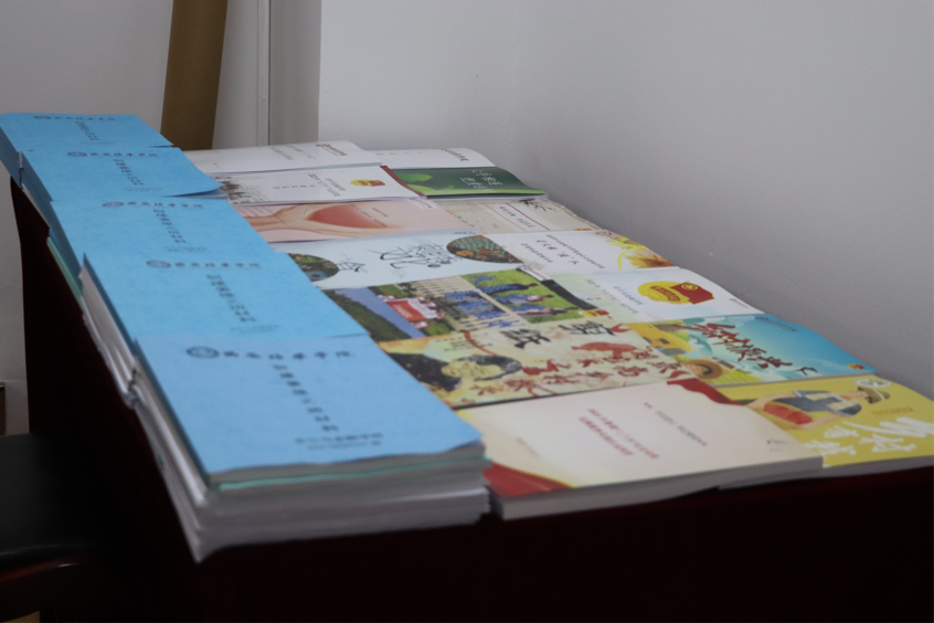 调研组成员查阅学院创建材料