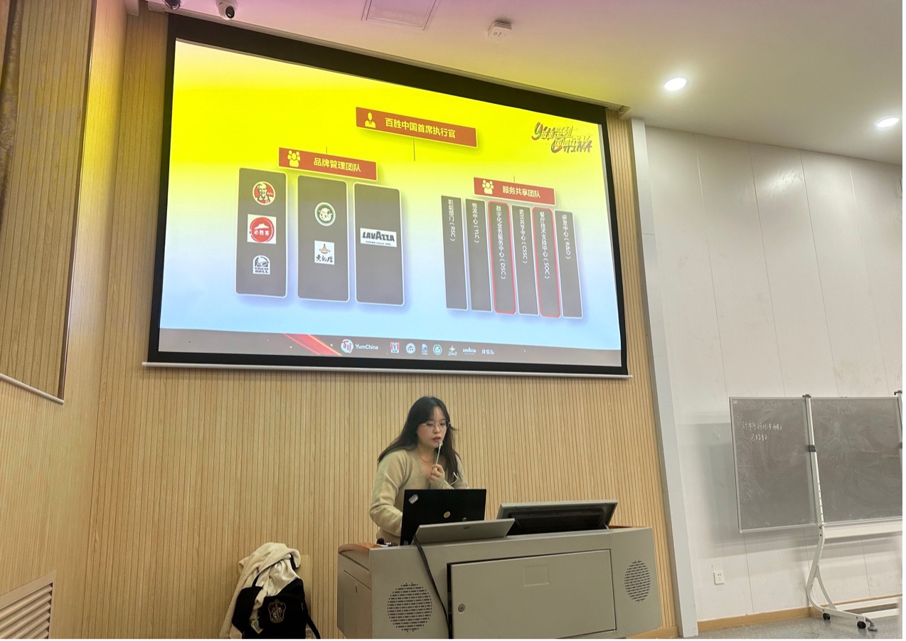 接着宣讲的企业是百胜中国,公司代表王钰佳介绍了企业实力及多元化的业务领域,提到了优渥的办公环境以及员工福利。